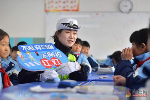 12月2日,在夏邑县育才学校,民警为小学生讲解道路安全知识。当日是第十三个“全国交通安全日”,夏邑县育才学校、县公安局交警大队联合开展“全国交通安全日”校园主题活动,通过参观体验铁骑、学习交通指挥手势操、互动问答等环节,帮助学生们增强交通安全意识,培养安全出行、文明出行的良好习惯。苗育才 摄