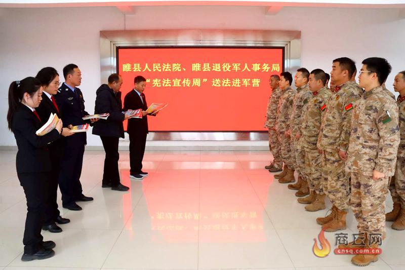 近日,睢县人民法院联合县退役军人事务局开展“送法进军营”活动,该院党组成员、政治部主任王永生围绕官兵较为关心的军婚法律保护、民间借贷等问题进行“一对一”细致讲解,并为官兵们送上法律宣传资料。本报融媒体记者 梁晓晨 通讯员 付力源 摄
