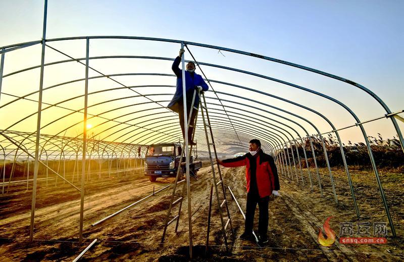 12月8日,夏邑县太平镇太平西村村民在搭建西瓜大棚,筹备明年早春西瓜秧苗移栽。 本报融媒体记者 张壮伟 摄