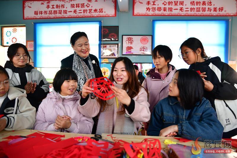 12月13日,河南省非物质文化遗产(剪纸)项目代表性传承人、省级民间工匠大师胡明老师,在夏邑县北岭镇中小学生劳动教育实践基地,手把手教孩子们剪出自己喜爱的花样。近年来,北岭镇中心学校充分整合非遗资源,常态化开展非遗项目进校园活动,依托校园浸润,进一步增强非遗的生命力,让非遗之花在校园里绽放出迷人的光彩。记者 张壮伟 摄