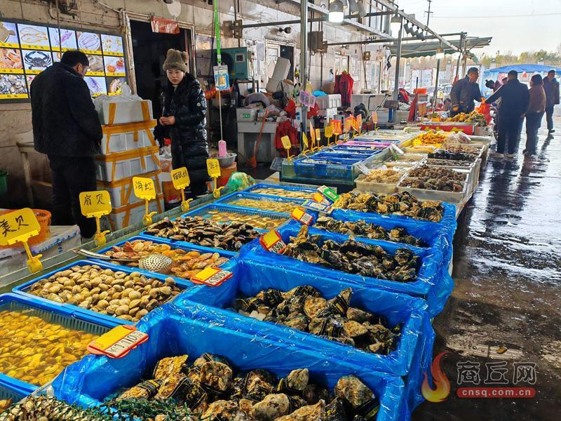 昨日,商丘市农产品中心批发市场,市民正在采购肉类、海鲜等食材。冬至临近,市区各大商超及农贸市场也迎来消费高峰。据悉,我市蔬果、肉、蛋、奶供应充足、价格平稳,消费市场繁荣有序。