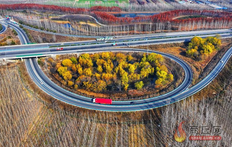 12月17日,记者在连霍高速与G105国道交会处东南角拍摄的商丘景色。初冬时节,商丘境内的国道两侧,树木随季节呈现出不同颜色,为“枢纽商都”商丘增添了生机与活力。