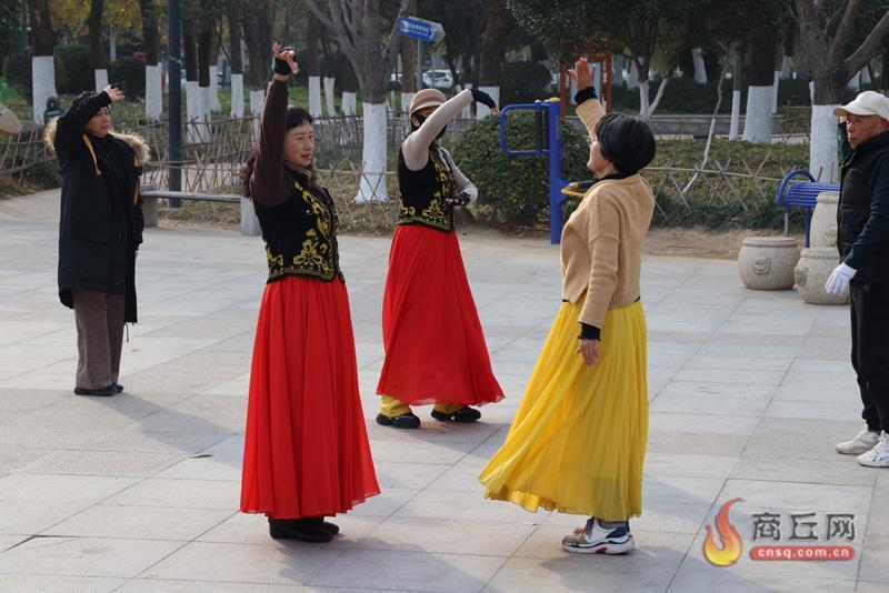 12月19日,民族舞爱好者在方域路翠竹园公园练习新疆舞,为冬季的公园增添了一道亮丽的风景线。 本报融媒体记者 邢栋 摄
