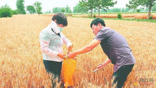 柘城支公司农险部工作人员会同农业专家进行小麦理赔抽样核损。