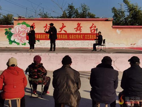 近日,永城市演集街道“推进移风易俗,弘扬文明乡风”新时代文明实践巡回演出走进丁楼村,给群众带来了戏曲、舞蹈等精彩的节目,丰富群众精神文化生活,进一步营造和谐文明向善的社会新风尚。 孙向阳 摄