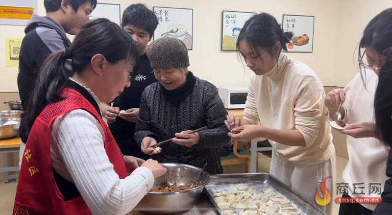 据了解,平原街道综合养老服务中心是一所社区嵌入式养老院。该综合养老服务中心同时承担着社区大食堂的功能。“我们就住在对面。这里有免费的麻将桌和按摩椅,我们几个老太太没事就来这玩。中午不想做饭,就在这食堂里吃饭,6块钱吃饱吃好还干净。”正在教大学生志愿者包饺子的周阿姨对记者说。刚下课就从学校赶过来的商丘师范学院大二学生孟同学,边穿志愿者马甲边说道:“我们是买小吃的时候发现这个综合养老服务中心的。这个地方和我印象中的养老院不太一样,他们的食堂对外开放。我和同学经常来吃,还会碰到快递小哥在这吃饭。有空的时候,我们也会来这做志愿者。”