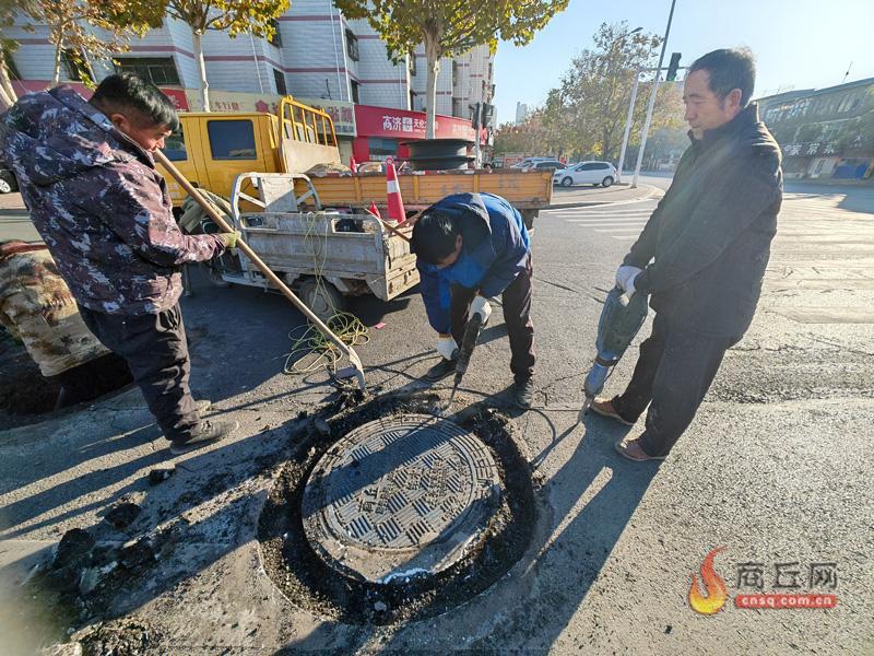 近日,市区中州路与八一路交叉口东北角,市水务公司维修中心施工人员冒严寒,更换人行道上的供水阀门井井盖,切实保障市民出行安全。