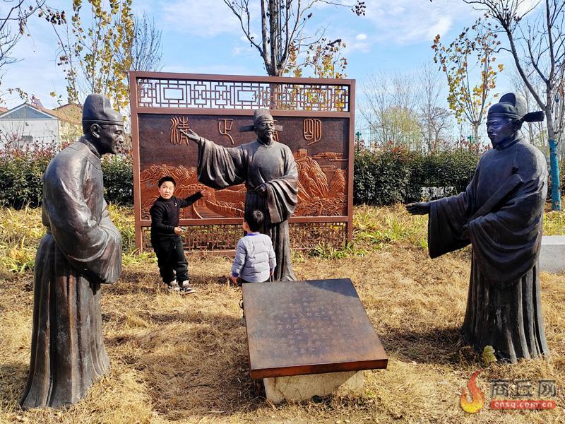 12月22日,两名儿童在睢县利民河景观带明代廉吏袁可立雕像前驻足。为展现本县历史文化与现代城市风貌,睢县先后完成凤鸣盛世、铁人三项、水城骄子、望母台、睢杞战役等雕塑近20尊,让市民与游客在游玩的过程中潜移默化地接受教育。 记者 黄业波 摄