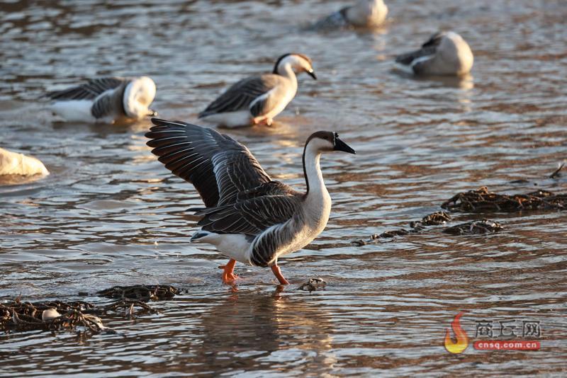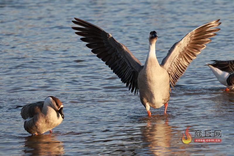 12月28日,天晴水蓝,商丘市汉梁文化公园内数百只鸿雁出现在游客面前。它们有的在水中觅食嬉戏,有的在岸边清洗羽毛,憨态可掬的样子吸引了无数游客的目光。
