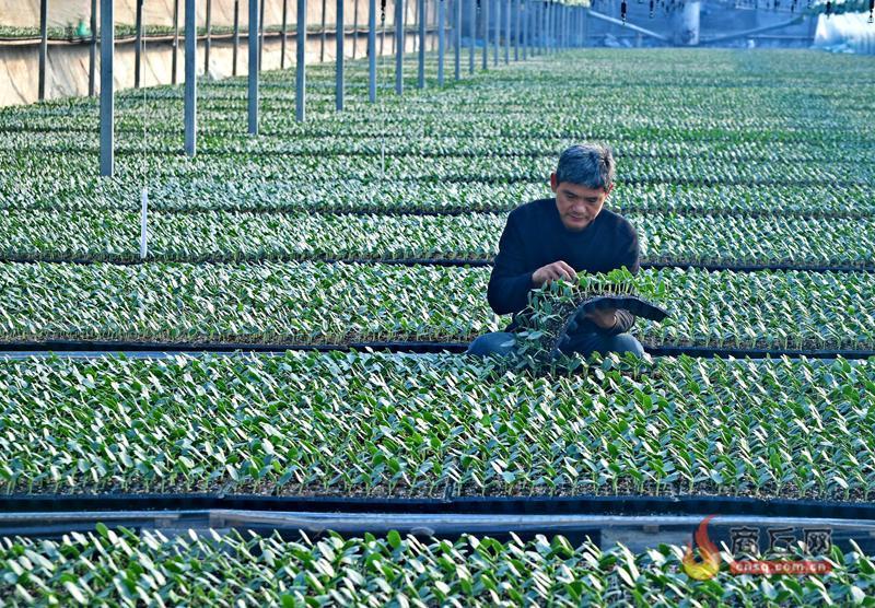12月29日,夏邑县会亭镇朱瓦房村高翔种植专业合作社的大棚里,工人在查看西瓜苗生长情况。几年前,该村村民高波返乡创办高翔种植专业合作社,建起育苗工厂,每年育出300万株西瓜苗和500万株辣椒苗。合作社多次承担完成省西瓜、辣椒“四优四化”项目,并安排60余名村民在合作社工作。 本报融媒体记者 韩丰 摄