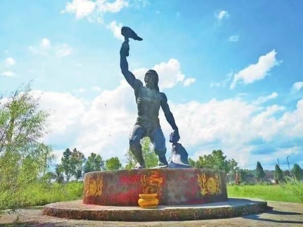 王亥立於高台之上,偉岸挺拔、目光炯炯。雖經數千年滄海桑田,但王亥開創中國商業史的智慧和指揮一個部落開疆拓土、遊牧經商的王者氣度,仍卓然不凡、令人肅然起敬。