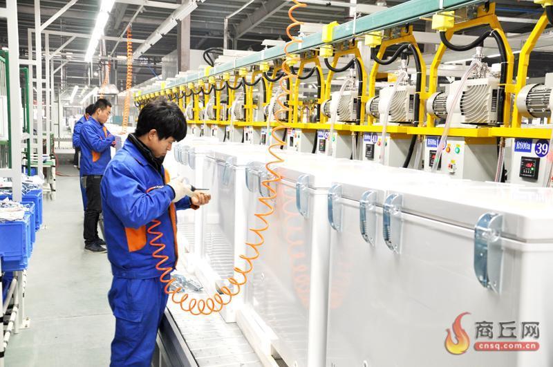 民权澳柯玛电器冷柜公司工人在生产线上忙碌。 记者 闫鹏亮 摄