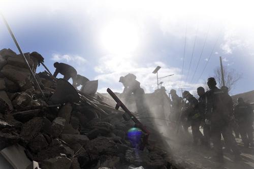 1月7日,救援人员在定日县长所乡古荣村进行搜救 新华社发