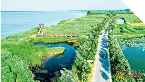 走进河南民权黄河故道国家湿地公园,湖水清湛,水天一色,一群候鸟时而在湖面悠游嬉戏,时而在空中展翅翱翔。