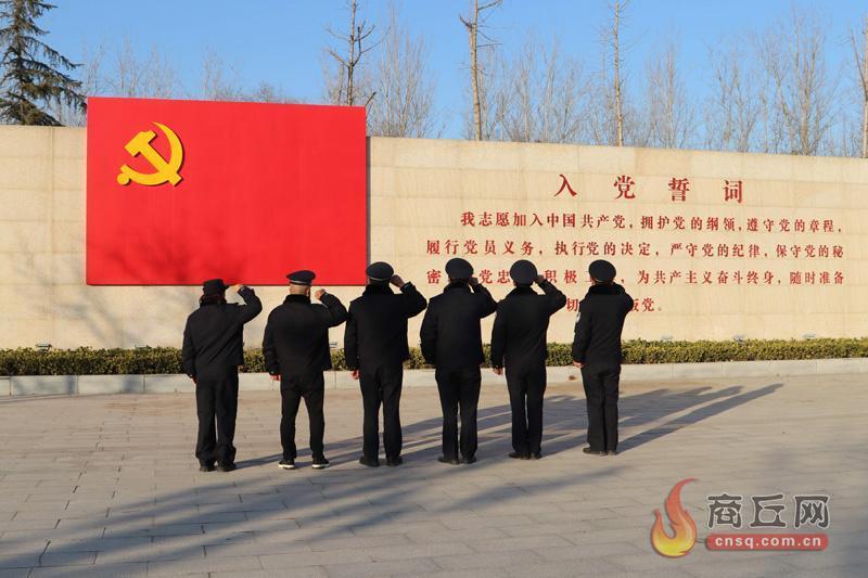 1月9日,民权县人民检察院司法警察大队干警在民权县第一个党支部旧址所在地秣坡村,重温入党誓词。当天,该大队开展庆祝第五个中国人民警察节活动,先后到睢杞战役纪念馆、民权县双塔镇秣坡村等红色基地参观,接受革命传统教育,展现新时代司法警察的良好精神风貌。