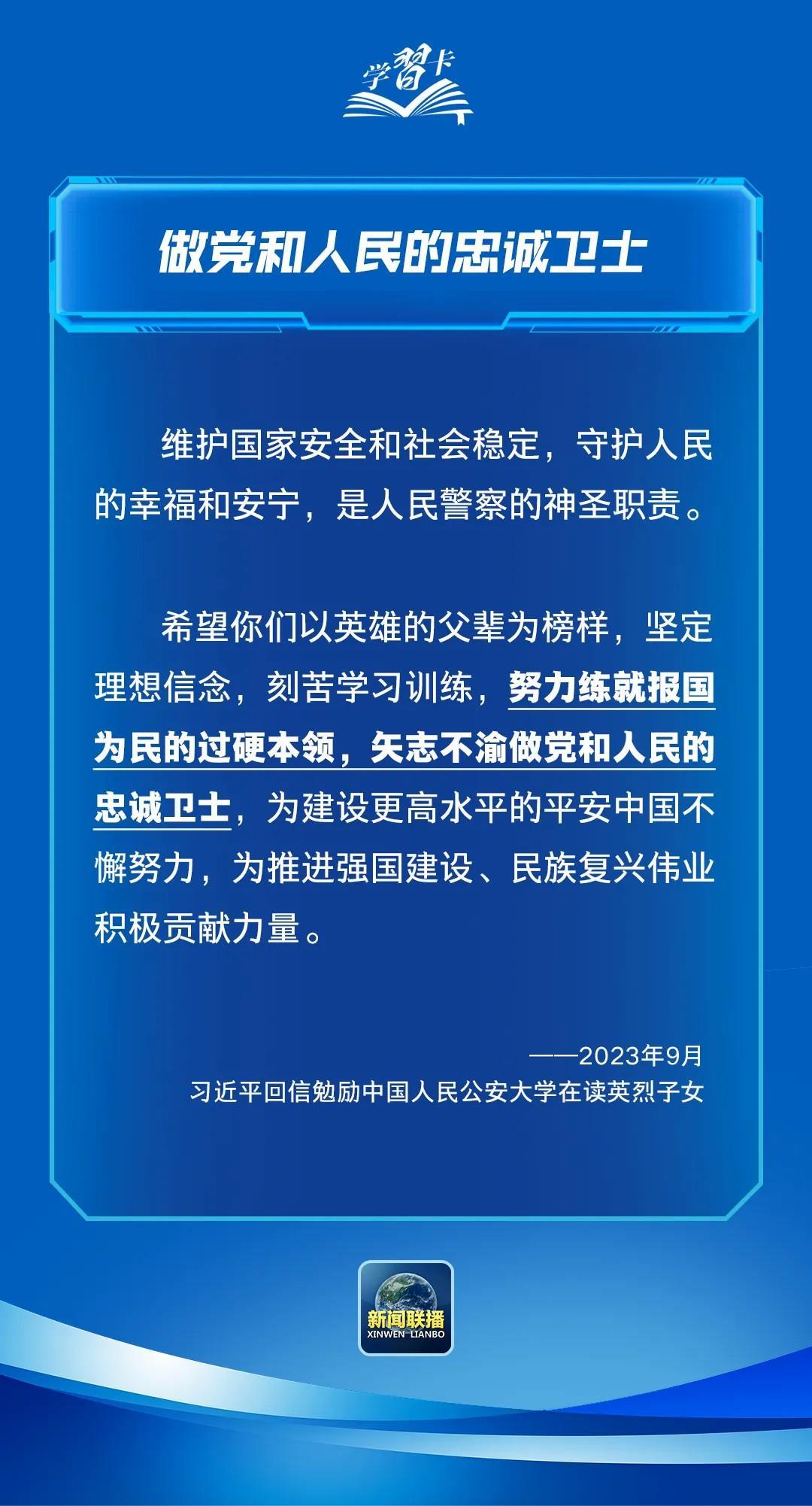 人民警察是党和人民的忠诚卫士,他们来自人民、心系人民、植根人民、服务人民。习近平总书记始终关心关怀、寄予厚望。