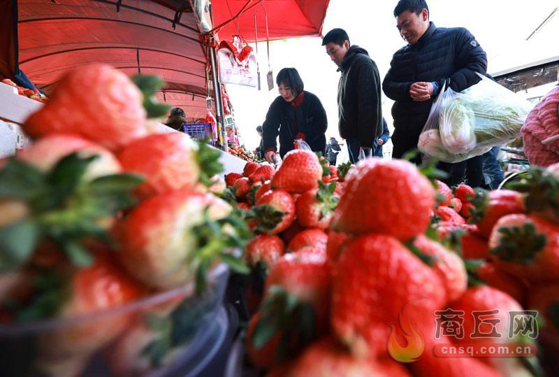 1月12日,在文化路一家农贸市场,市民正在选购草莓。据卖家介绍,目前草莓每斤4元至10元,相比往年春节前的价格,降幅较大。 本报融媒体记者 魏文慧 摄