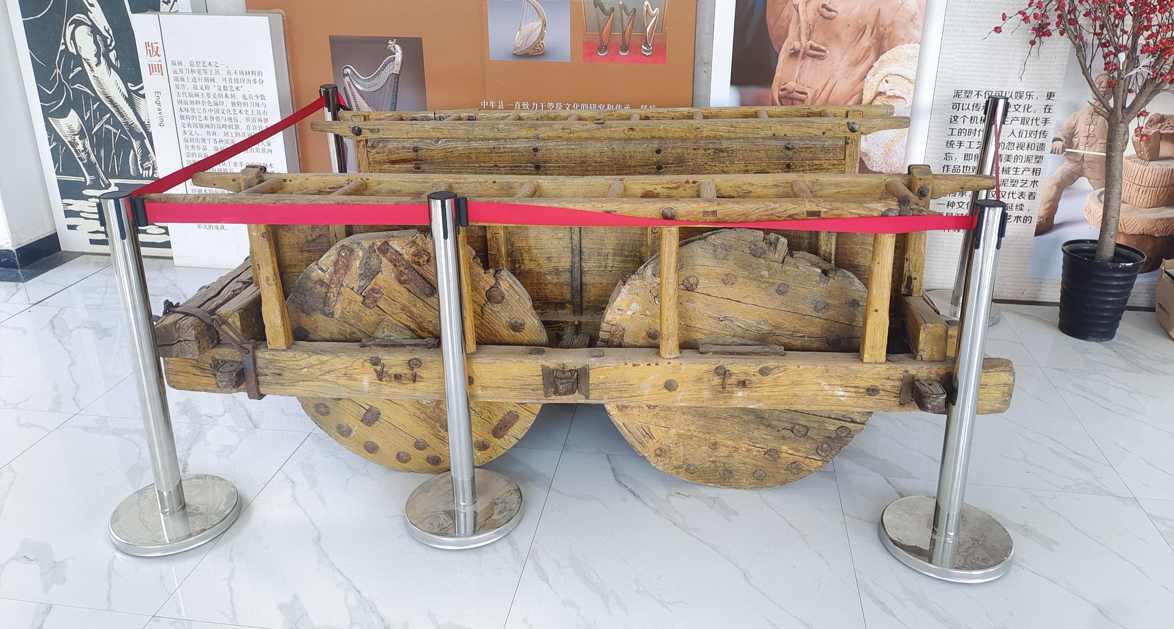 一校园内展陈的太平车。