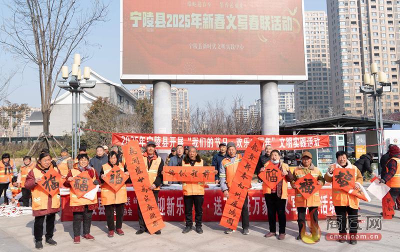 1月21日,宁陵县新时代文明实践中心、县文联联合在县人民公园好人广场举行2025年新春义写春联活动。参加活动的宁陵知名书法家和书法爱好者现场挥毫泼墨,一副副寓意吉祥、充满节日气氛的春联跃然纸上。县文明实践中心和县文联的负责人与书法家一起,将满载祝福的春联和“福”字赠送给环卫工人,并与他们合影留念。