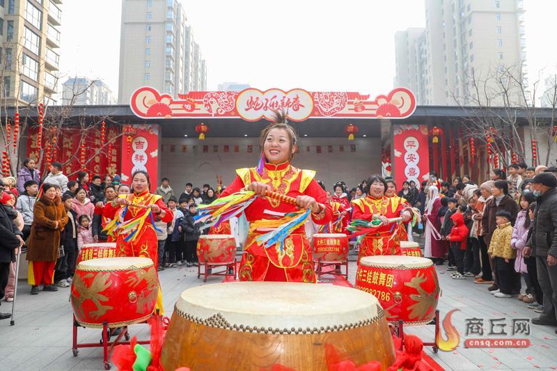 1月22日,农历腊月二十三。柘城金沙如意城小区里热闹非凡,舞龙、舞狮、盘鼓等传统非遗表演轮番上演。小区居民齐聚一堂,喜迎新春佳节。