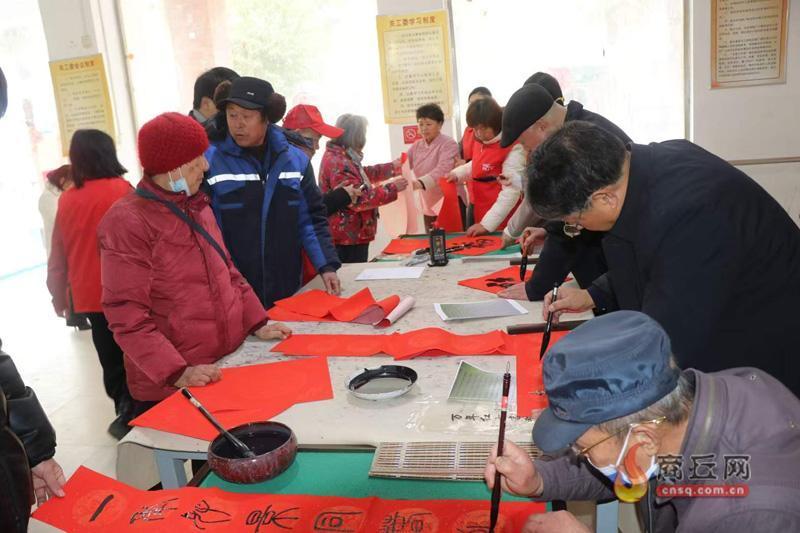 1月21日上午,睢阳区新城街道应天服务站内格外热闹,随着书法爱好者挥毫泼墨,一副副喜庆的春联随笔尖流动而出。为庆祝新春佳节、弘扬传统文化,当天新城街道应天服务站联合合众人寿,开展“迎新春、送祝福”义写春联活动。