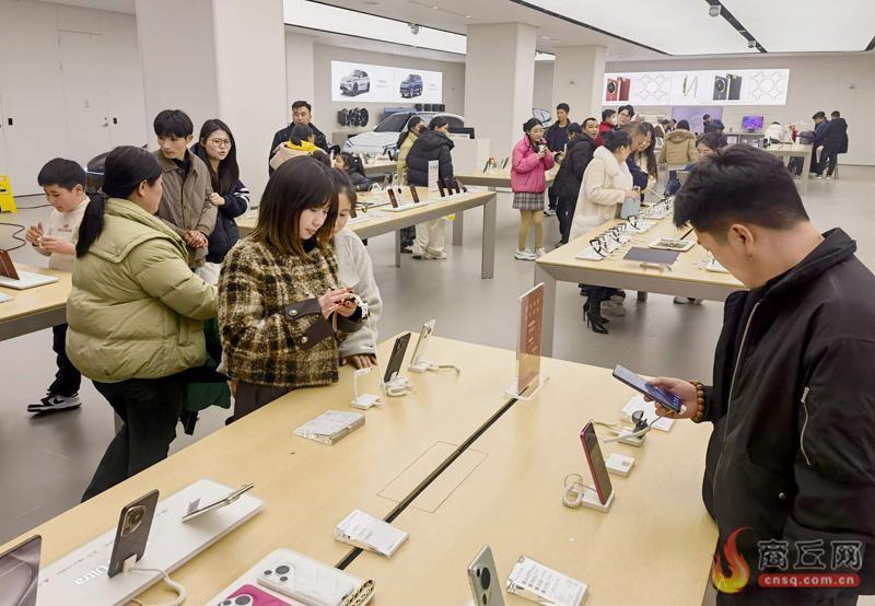 1月23日,在商丘市区一家大型商场,市民正在手机柜台前咨询“国补”政策后的手机价格。春节临近,在优惠政策的刺激下,数码市场生意火爆。记者 魏文慧 摄