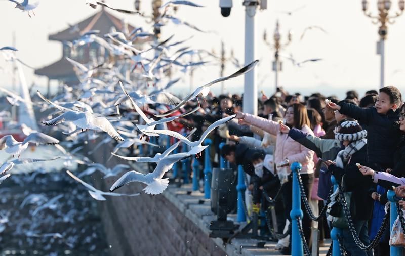 青岛栈桥人气火爆。