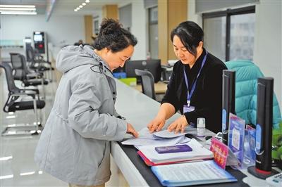 范洁(右)正在为市民讲解政策。 王凯 摄