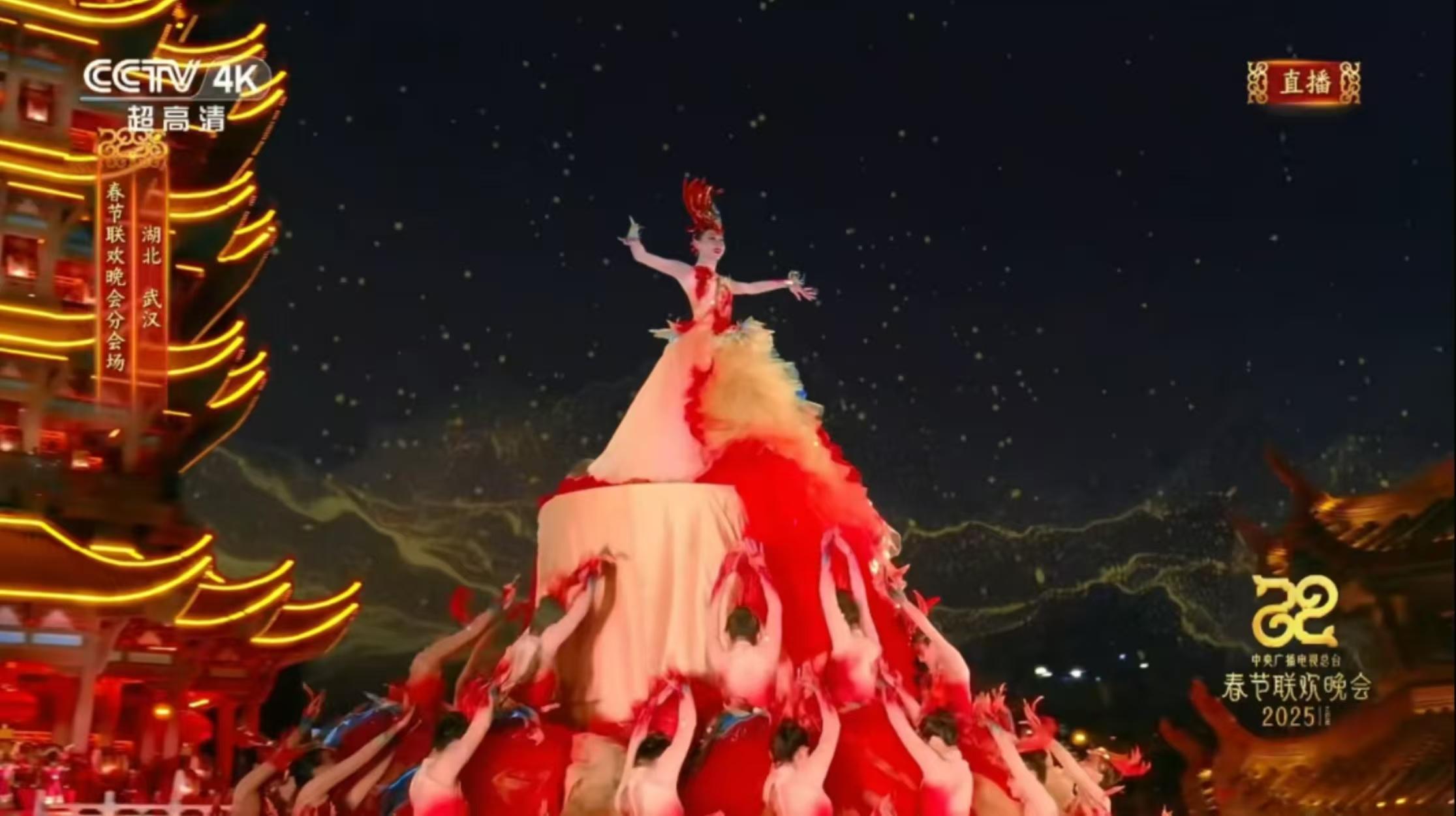 在2025年央视春晚武汉分会场上,241位演员在黄鹤楼前共舞一支“凤凰舞”,“凤头”是河南籍舞者孟庆旸饰演。