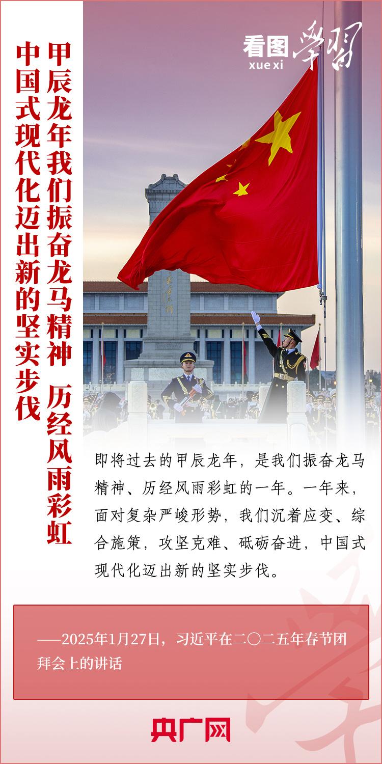 1月27日,中共中央、国务院在北京举行春节团拜会,习近平总书记发表热情洋溢的讲话,向全国各族人民、港澳台同胞、海外侨胞拜年并致以新春祝福。总书记在讲话中深情回顾过去一年中国式现代化取得很不平凡的发展历程,“希望全国各族人民以蛇行千里的劲头,坚定信心、满怀希望,开拓进取、顽强奋斗,共同书写中国式现代化新篇章。”一起来学习!