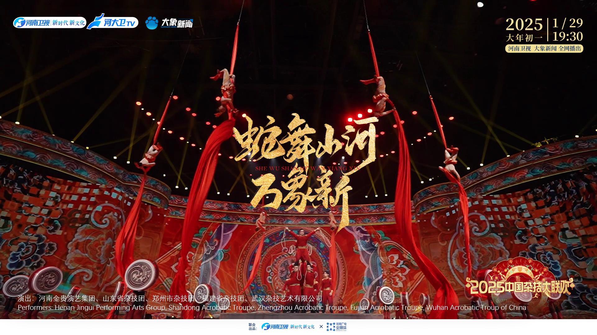 银蛇曼舞迎春来,金龙腾飞送冬去。1月29日晚,大年初一,新春佳节的喜庆氛围弥漫在华夏大地的每一个角落。当晚7:30,随着热闹非凡的《蛇舞山河万象新》,“蛇舞山河 万巳如意”2025中国杂技大联欢在“中国杂技之乡”周口盛大举行,并通过河南卫视、大象新闻等平台向全国观众同步直播。这场涵盖绳技、柔术、红绸垂钓、高车踢碗、吊辫子、顶坛、抖杠、魔术、腾空飞杠、草帽、大跳板、马术等多种表演形式的盛会,为观众呈现出一场年味与奇幻交织的新春盛宴。