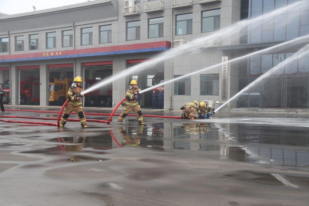 新华社郑州1月30日电(记者马意翀)春节前夕一场雨雪天气“光临”河南,让濮阳市濮阳县柳屯镇寒意逼人。尽管傍晚训练场上寒风瑟瑟,但参训的国家危险化学品应急救援中原油田队九大队应急指战员们却热情不减。警报声、指挥声此起彼伏,一场紧张的“枪炮协同灭火操”训练正在展开。