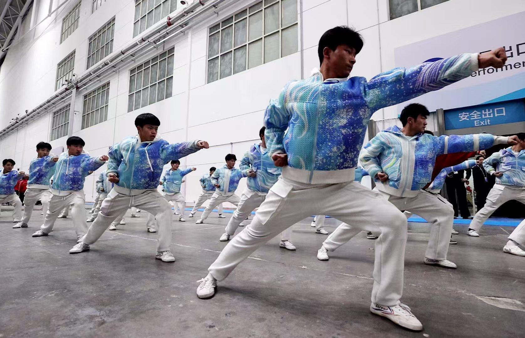 “无论身边的朋友还是同学,参加每次活动都是用心训练的,希望能把塔沟精神发扬光大,宣传到全球。我们希望能用精彩的演绎,生动展现冰雪运动的蓬勃活力与无限魅力,同时展示中国功夫发扬武术精神。”采访后,三名学员又投入到了紧张的排练中。