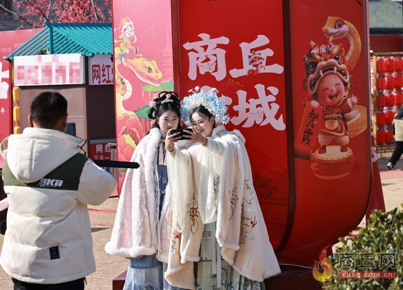 昨日,在商丘古城内,游客正在拍照留念。春节期间,商丘处处洋溢着喜庆的节日气氛,商场和景区处处人头攒动。记者 魏文慧 摄