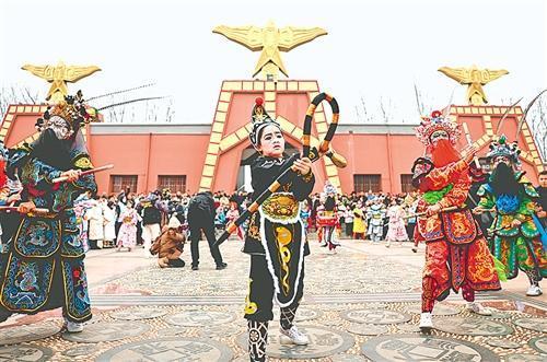 2月2日,农历正月初五,在商丘火神台庙会上,广东潮汕英歌舞与源自商丘的国家级非物质文化遗产代表项目麒麟舞、河南省级非物质文化遗产代表性项目肘歌等同台互动,南北文化在火神台同台演出,赢得观众阵阵掌声。潮汕英歌舞被誉为“中华战舞”“英雄之舞”,其动作刚劲有力,舞步整齐划一,极富观赏性与感染力。记者 魏文慧 摄