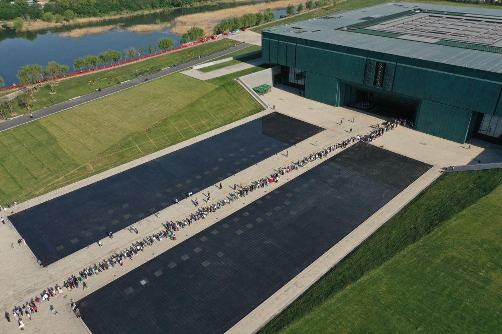 这是2024年5月1日,游客在河南安阳殷墟博物馆新馆排队进场。新华社发