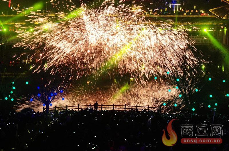昨日傍晚,游客在商丘火神台景区看灯展、欣赏打铁花表演。连日来,张灯结彩的商丘古城、火神台景区游人如织、人声鼎沸。看演出、观灯展、赏民俗、品美食、看绝活、听戏曲……浓浓的年味在各景区弥漫,处处洋溢着欢乐、喜庆的节日气氛。本报融媒体记者 魏文慧 摄