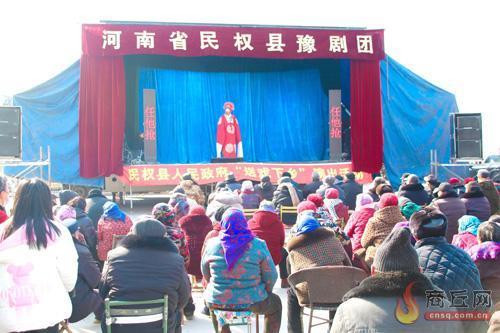 2月12日,民权县花园乡陈庄村群众在观看民权县豫剧团表演的豫剧。连日来,该县开展了“送戏下乡”巡回演出活动。本报融媒体记者 闫鹏亮 摄