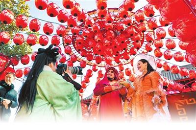 上图 2月12日,开封古城形式多样的文化活动,吸引了众多海外游客前来游玩、感受中华传统文化的魅力。李新义 摄