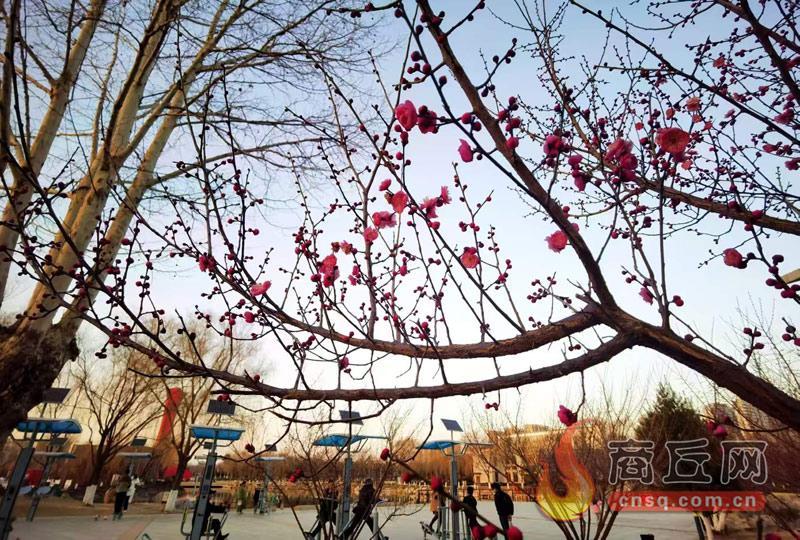 在“商丘好人”广场的东南角,有一片梅林尤为引人注目。在以枯黄为主色调的早春,这一抹红色异常醒目。走近梅林,只见枝干上挂满了点点红梅,它们或含苞待放,或傲然盛开,共同演绎着春天的序曲。记者看到,目前大部分红梅仍处于花蕾阶段,它们圆圆的,宛如一颗颗精致的珍珠镶嵌在枝头。这些花蕾蓄势待发,仿佛在等待某个特定的时刻,便会同时绽放出属于春天的绚烂。而那些已经盛开的红梅,则以其独特的魅力吸引着游客们的目光。花瓣薄薄的、亮亮的,随着阳光的流转,闪耀着莹润的光彩。如丝如缕的花蕊在花瓣中若隐若现,散发着阵阵清香,让人陶醉其中,流连忘返。