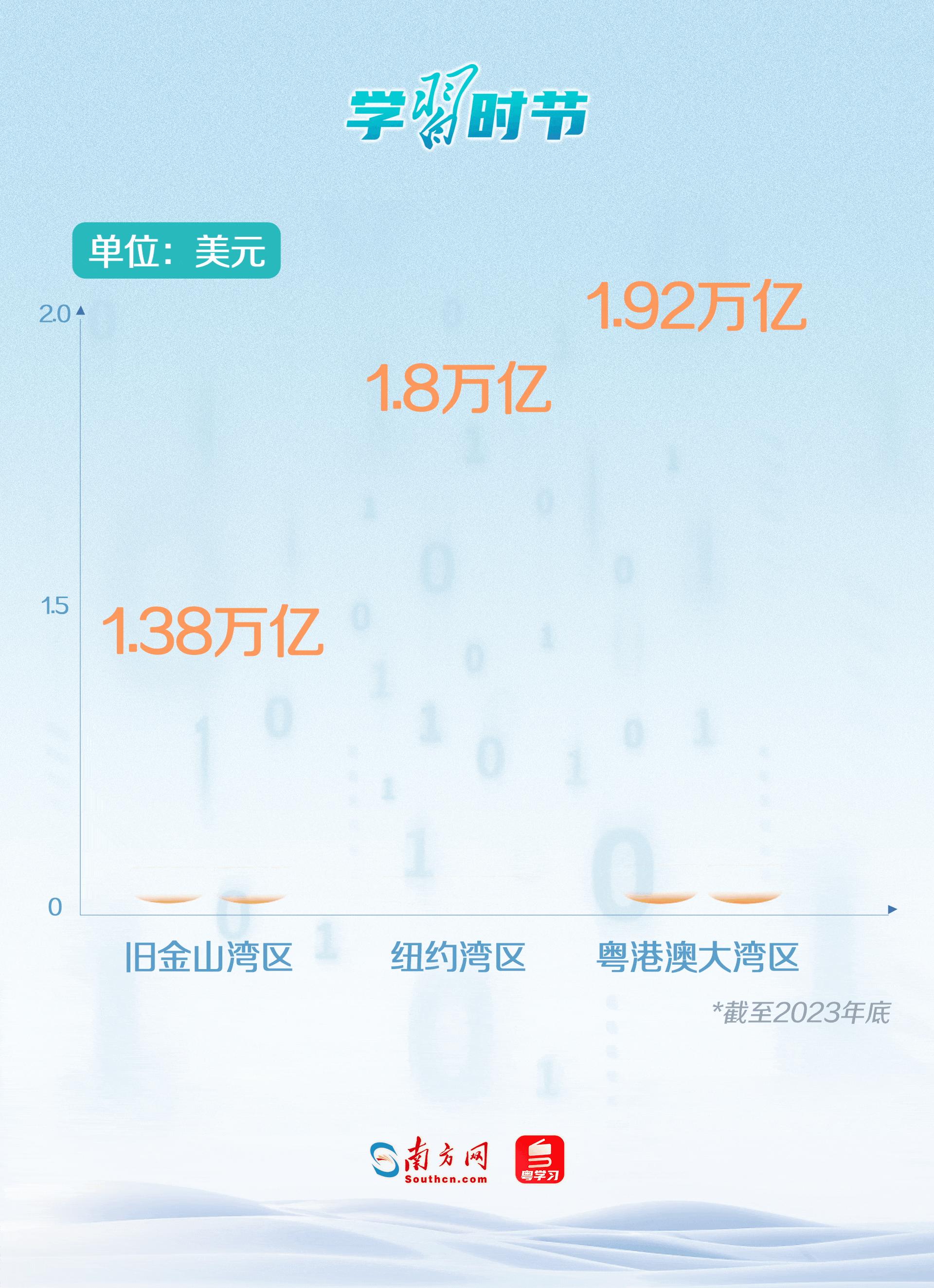 截至2023年底,大湾区经济总量突破14万亿元人民币(约合1.92万亿美元),成为中国经济最具竞争力和最具活力的区域之一,入列全球湾区第一梯队;