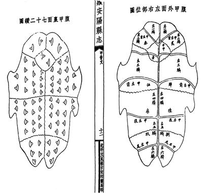 《续安阳县志》内页“腹甲外面左右部位图”“腹甲里面七十二钻图”。