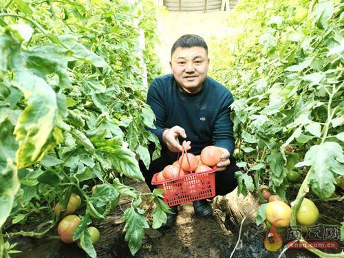 2月19日,民权县绿洲街道吴庄村村民在展示刚采摘的番茄。近年来,绿洲街道财政所加大特色产业扶持力度,推动域内产业高质量发展。 本报融媒体记者 闫鹏亮 摄
