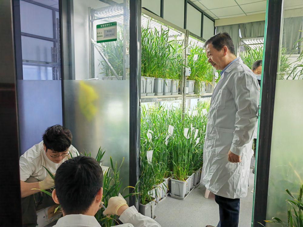 实验室内光线明亮,温度适宜,30多种小麦或枝叶茂盛、或茎杆挺拔,通过人工模拟小麦生长环境,可以实现快速育种。