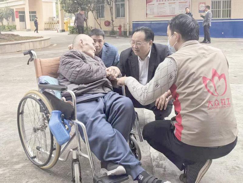 商丘的爱心一直在持续,而在千里之外的深圳,爱心也在不断传递。2月18日一早,袁成友独自前往广东省东莞市救助管理站。沟通后得知,老人今年78岁,双腿行动极为不便,日常依靠轮椅出行。见到老人后,袁成友又耐心地与老人交流。
