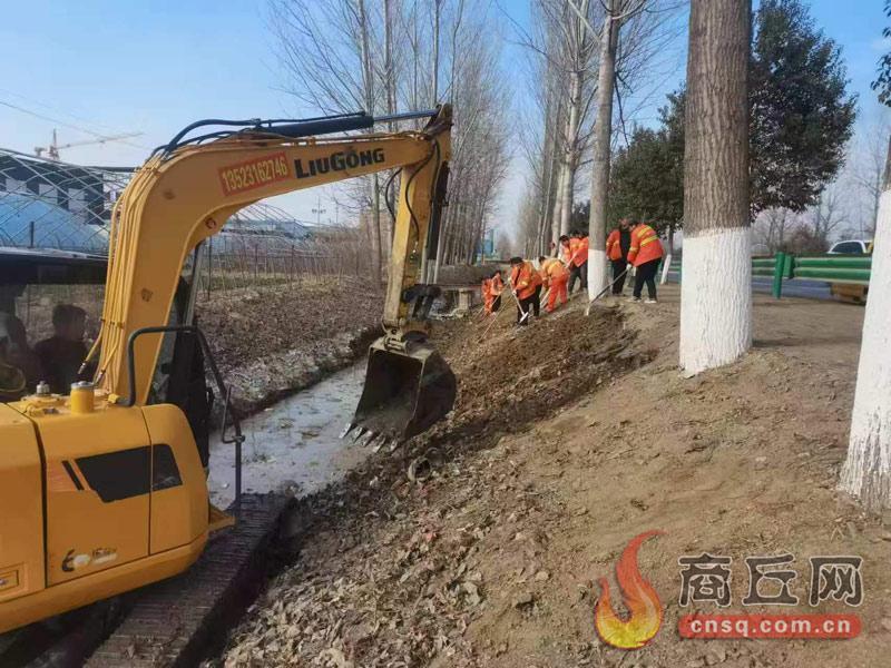 春风激荡万物苏,畅通公路不停步。2月26日,G105线睢阳区闫集段两侧,彩旗招展,挖机轰鸣,人头攒动,铁锨飞舞,来自睢阳区公路事业发展中心的工作人员正在对该路段进行边沟疏通、路肩美化、边坡修整。