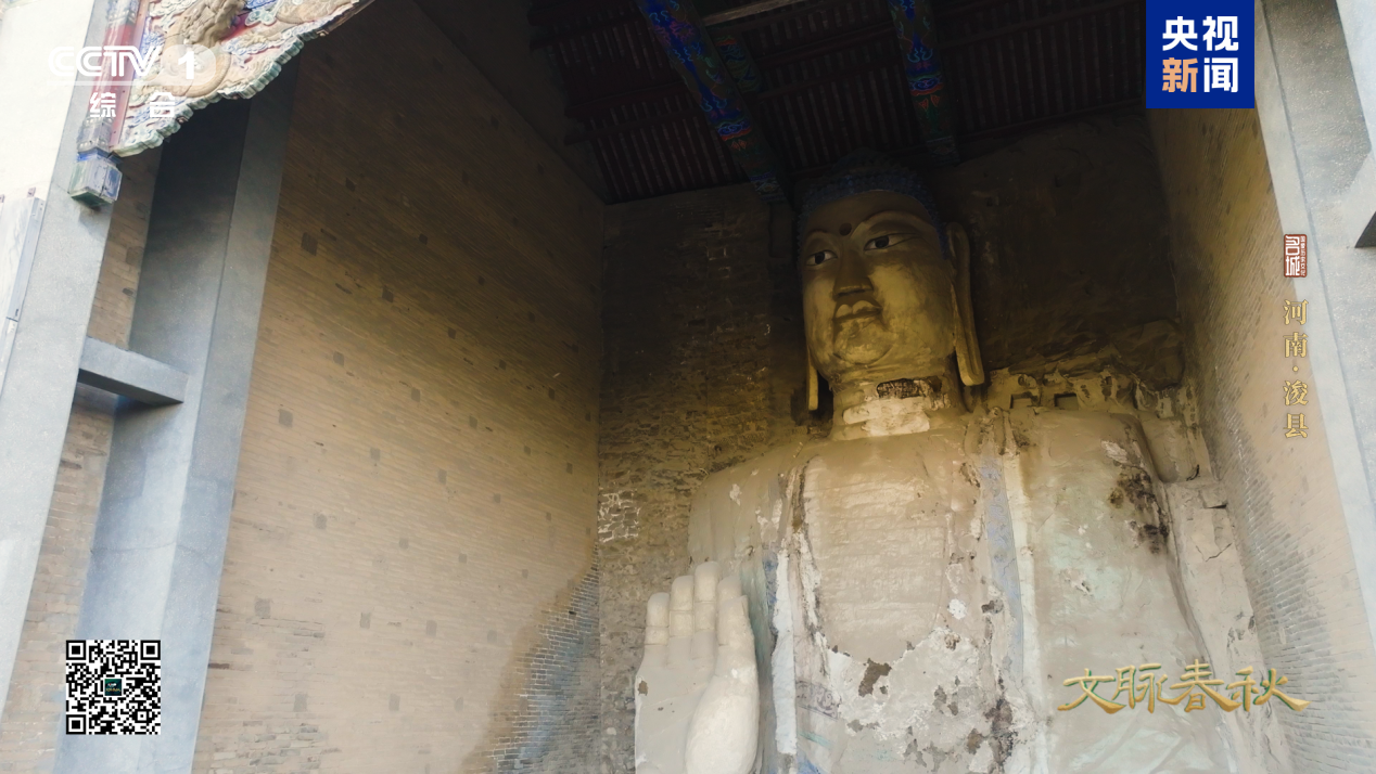 位于浚县大伾山半山腰的这座巨大佛像,始建于东晋十六国时期,比人们熟知的北魏云冈石窟造像还要早100多年,宋代以前,黄河就在大伾山下经过,当地人苦于黄河水患频繁,于是“凿大石佛以镇河”,远近百姓祈福祭拜,经久成俗,这也是浚县正月盛大庙会活动的源头。