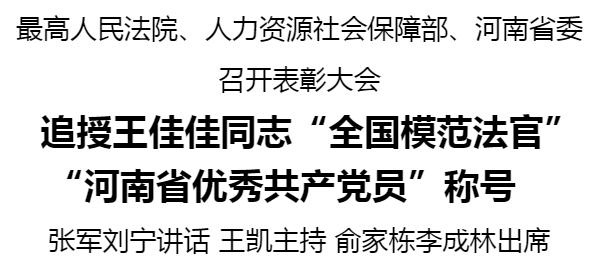 最高人民法院、人力资源社会保障部、河南省委召开表彰大会 追授王佳佳同志“全国模范法官” “河南省优秀共产党员”称号