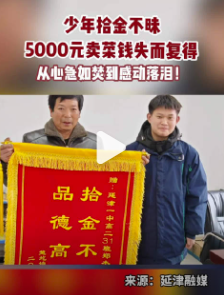 近日,河南新乡,失主赵先生专程到延津一中赠送锦旗,以此表达他对年前辛苦售卖二十多天的白菜钱失而复得的感激之情,5000元白菜钱见证了延津一中学子郑杰武的高尚品德!拾金不昧,传递正能量,为这样的校园榜样点赞!
