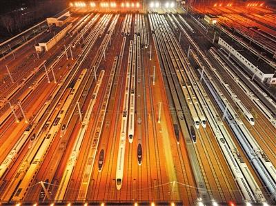 郑州动车段动车组存车场内一列列动车组整装待发。 崔轩豪 摄